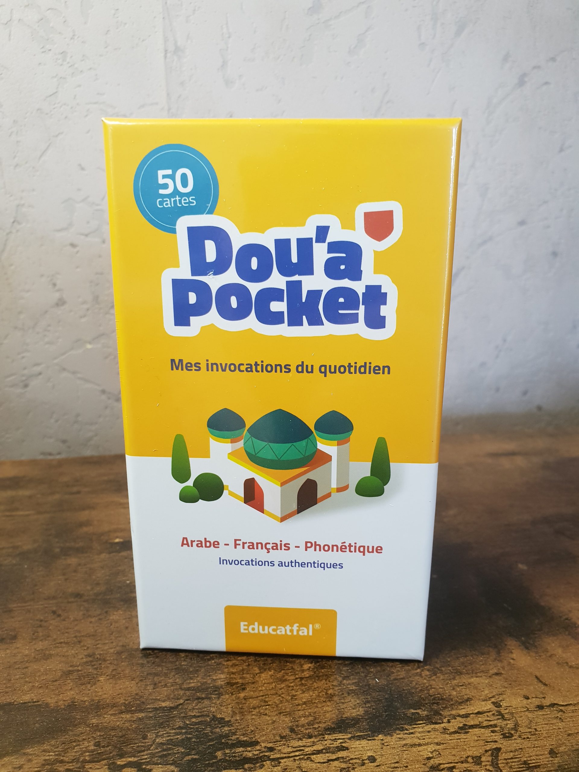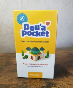 Dou’a pocket c’est 50 jolies cartes d’invocations avec au recto le texte en langue arabe, et au verso le français et la translittération phonétique.